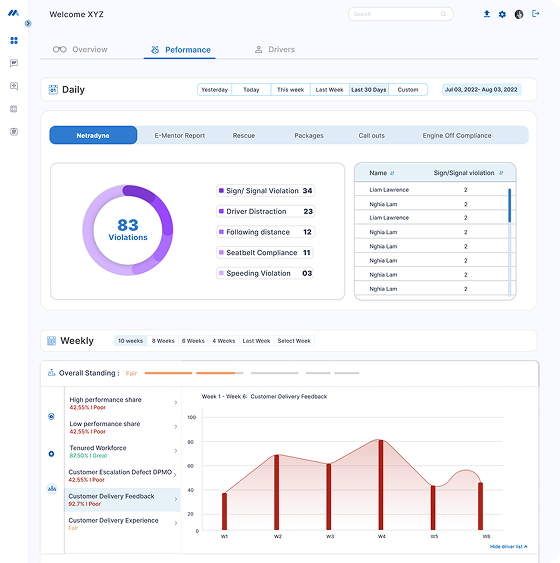 Each driver receives an individual performance scorecard highlighting key metrics and areas of improvement.