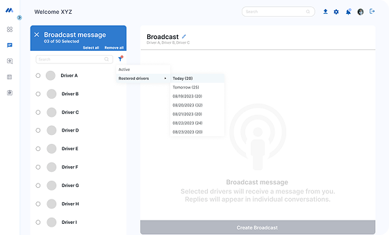 Send group messages to selected drivers (active, inactive, or rostered) quickly and easily.