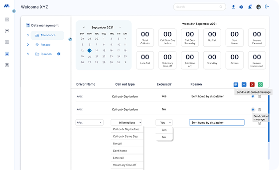 Record upcoming callouts and use historical data to improve rostering and driver reliability.