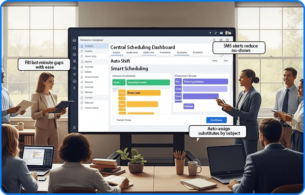 Auto-assign substitutes by subject, grade, and availability