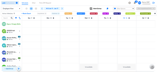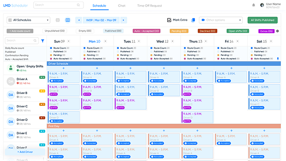 Instantly view scheduled drivers, gaps, and workload distribution in a single snapshot.